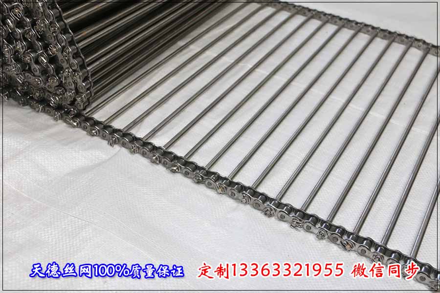 鏈桿輸送帶可采用碳鋼、不銹鋼201/304/316不銹鋼材料,以鏈條傳動,鏈條可選用標(biāo)準(zhǔn)鏈條和雙節(jié)距輸送鏈條使網(wǎng)帶受力減小容易安裝網(wǎng)帶的附屬配件,如擋板,側(cè)翼,用于輸送固體物料,通透性好,易清洗. 旋的繞絲串起來形成平衡編織的輸送網(wǎng),螺距3毫米,每1米寬網(wǎng)帶有333個圈。節(jié)距6毫米,每1米網(wǎng)帶長有166根曲軸。 該網(wǎng)帶通常網(wǎng)絲是圓的,但也可以制作成扁絲的。材料可選碳鋼、201不銹鋼、304不銹鋼、316不銹鋼等。