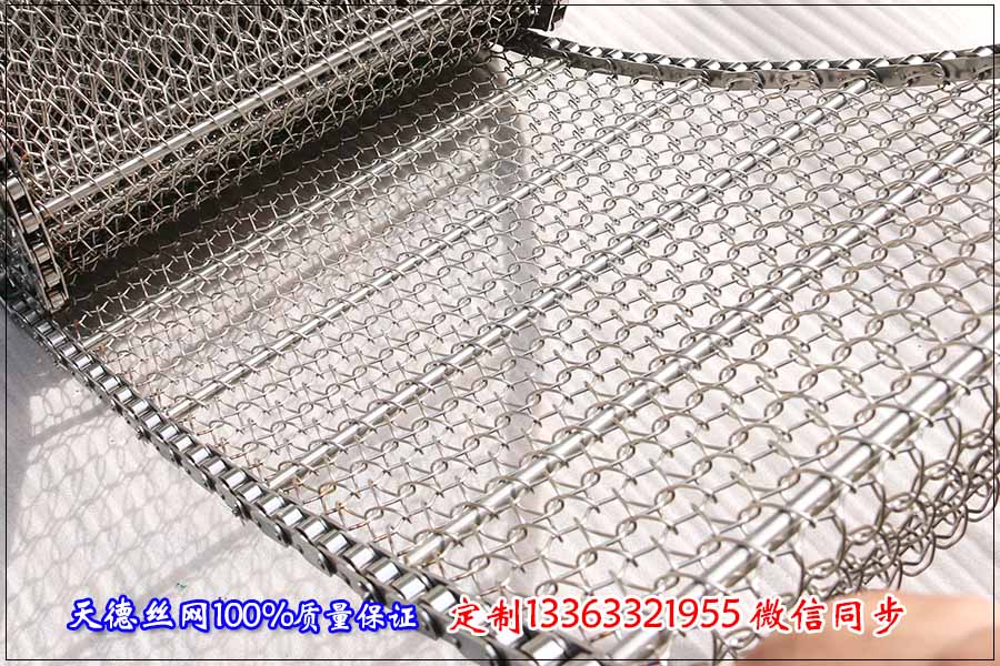 鏈桿輸送網(wǎng)鏈的具體規(guī)格如下: 1.鏈桿輸送網(wǎng)鏈的總寬度為1000毫米,總長度為200米,鏈條節(jié)距為25.4毫米,兩節(jié)一根穿桿,即50公分左右一根,金屬桿的直徑為8毫米。 2.鏈條不銹鋼網(wǎng)帶的總寬度為1000毫米,總長度為20米,絲徑為2毫米,孔徑為30*30毫米,不銹鋼網(wǎng)帶的鏈條節(jié)距為31.75毫米,不銹鋼桿直徑為8毫米,傳桿之間的距離為20公分左右,材質(zhì)選用不銹鋼201材質(zhì)。