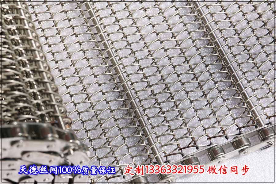 其中這臺(tái)鋼絲編織網(wǎng)帶輸送機(jī)的相關(guān)規(guī)格是這樣的:應(yīng)客戶的需要網(wǎng)帶輸送機(jī)的總寬度為500毫米,總高度為500毫米,也就是半米高的高度,長度為7米,輸送為平面輸送。由于輸送的是魚丸,我們采用鋼絲編織型的不銹鋼輸送帶比較合適,此形式的網(wǎng)帶成本較低,使用時(shí)間長。魚丸速凍輸送網(wǎng)帶的總寬為400毫米,輸送帶的寬度要小于輸送機(jī)的總寬度,輸送帶的總長度為14米,因為輸送機(jī)的長度為7米,不銹鋼輸送帶需要轉(zhuǎn)一圈的,輸送網(wǎng)帶的絲徑為1.2毫米,編織成型的輸送帶的孔為15*20毫米,只要魚丸不會(huì)漏下去就可以,根據(jù)輸送的需要網(wǎng)帶的兩側(cè)安裝高5公分的擋板,擋板的厚度為1.2毫米,作用是為了防止魚丸在輸送的過程中會(huì)漏下去。
