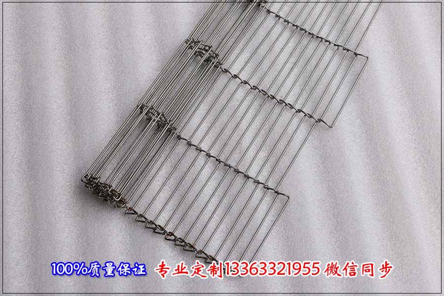 乙字網(wǎng)輸送帶:涼皮乙字網(wǎng)的總寬度為700毫米,這700毫米分為5個小格子,每個小格子的寬度為140毫米,每個小格子的長度為5毫米,也是每個小格子的孔徑。絲徑采用1.5毫米,整條帶子采用不銹鋼304材質(zhì)。完全符合食品行業(yè)的要求,保證張總加工的涼皮的質(zhì)量。