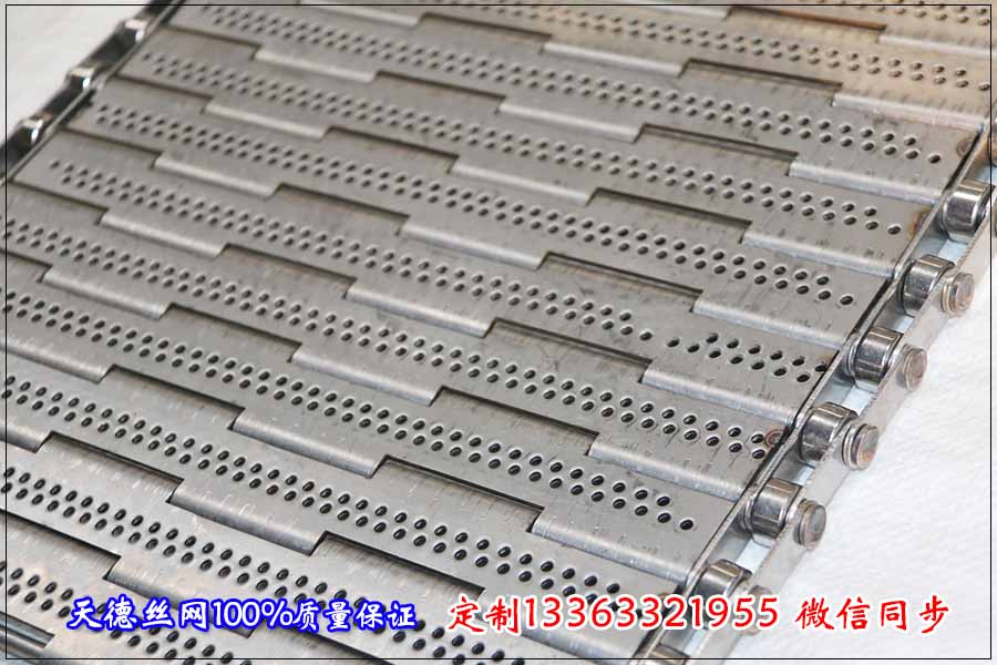 我們還要想到輸送物品重量是不是太過于重。之前有客戶在我天德公司訂購過草莓清洗機(jī)用的不銹鋼輸送帶,這位客戶和我反應(yīng)之前購買的鏈條輸送網(wǎng)帶因為網(wǎng)面不太平整(鋼絲編織的網(wǎng)面會有輕微凹凸)所以容易對輸送面的草莓表面因為輕微磕碰導(dǎo)致?lián)p傷,所以要更換一種網(wǎng)面平整的輸送帶。建議客戶訂購不銹鋼輸送帶為沖孔式鏈板,這樣就能防止因為網(wǎng)面不平導(dǎo)致刮傷物品。在訂購不銹鋼輸送帶的時候一定要根據(jù)輸送物品和使用環(huán)境等各方面因素來選用合適的輸送帶。