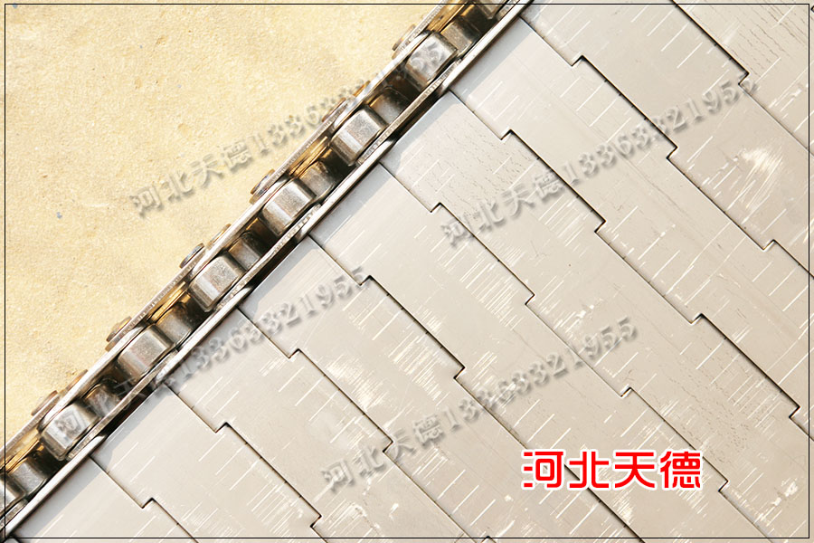 鏈板輸送帶采用1.0的鋼板折彎的,不需要打孔,鏈條節(jié)距為31.75毫米,鏈桿直徑為6毫米,兩條輸送帶都采用不銹鋼304材質(zhì),耐高溫耐磨損使用時(shí)間長(zhǎng)久。