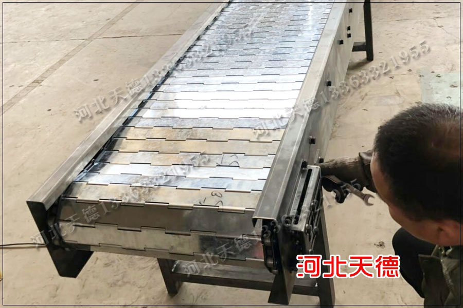 今天早上北京的客戶來電咨詢鏈板輸送機(jī)的規(guī)格,客戶知道自己使用鏈板輸送機(jī)比較合適,但是不知道如何與廠家溝通詳細(xì)的規(guī)格,也不清楚如何設(shè)計(jì)自己使用的鏈板輸送機(jī)的規(guī)格。我們經(jīng)過溝通以后,我們天德公司為北京這位客戶定制了以下規(guī)格的鏈板輸送機(jī)。